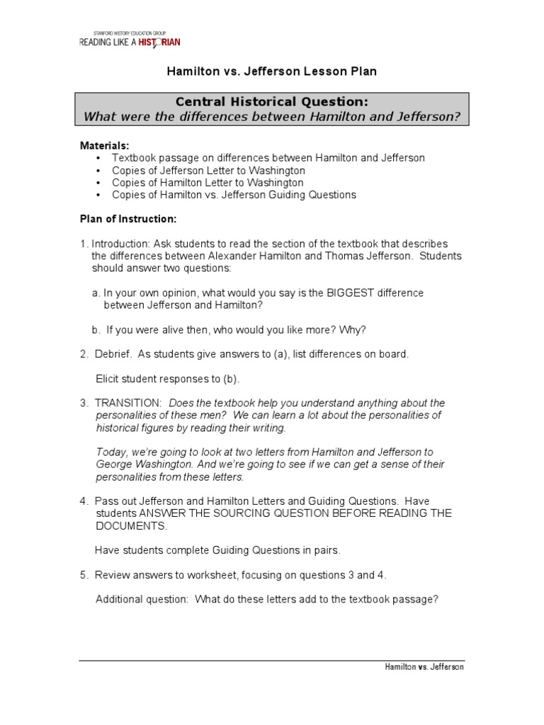 Hamilton Vs Jefferson Chart. When George Washington's administration began, the two camps that formed during the. View example Jefferson deemed "those who labour in the earth" the "chosen people of God. . . whose breasts he has made his peculiar deposit for substantial and genuine virtue.".